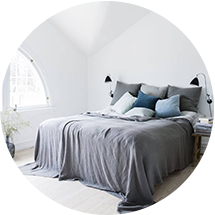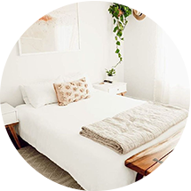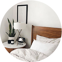 Čist design in preproste oblike spadajo med glavne značilnosti minimalizma. Spalnico v minimalističnem stilu sestavlja en glavni in dobro viden kos, ki ga dopolnjuje preprosta dekoracija v nežnih tonih. Ključ k uspehu je zadosti prostora za shranjevanje, kamor lahko pospravite svoje stvari. Z enobarvno posteljnino z decentnimi vzorci boste izrazili karakter prostora. Minimalizem nista zgolj bela in črna barva, tudi barvni interier lahko deluje minimalistično. Znebite se nepotrebnih stvari in dajte interierju zračnost.