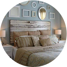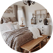 Vabljiva spalnica v zemeljskih barvah z motivom mozaika in patchworka. Bogato okrašeno kovinsko ali masivno posteljo dopolnite z naravnimi materiali kot sta usnje ali kovina. Posteljnina z abstraktnim vzorcem popestri celosten videz spalnice v vintage stilu. V takšen interier ne pašejo posebno izrazite in žive barve. Izbirajte nevtralne odtenke, na primer bronasto ali opečnato. Razen posteljnine posteljo popestrite z dekorativnimi vzglavniki, dekami ali pregrinjali, ki bodo ustvarili fino in nevsiljivo vzdušje.