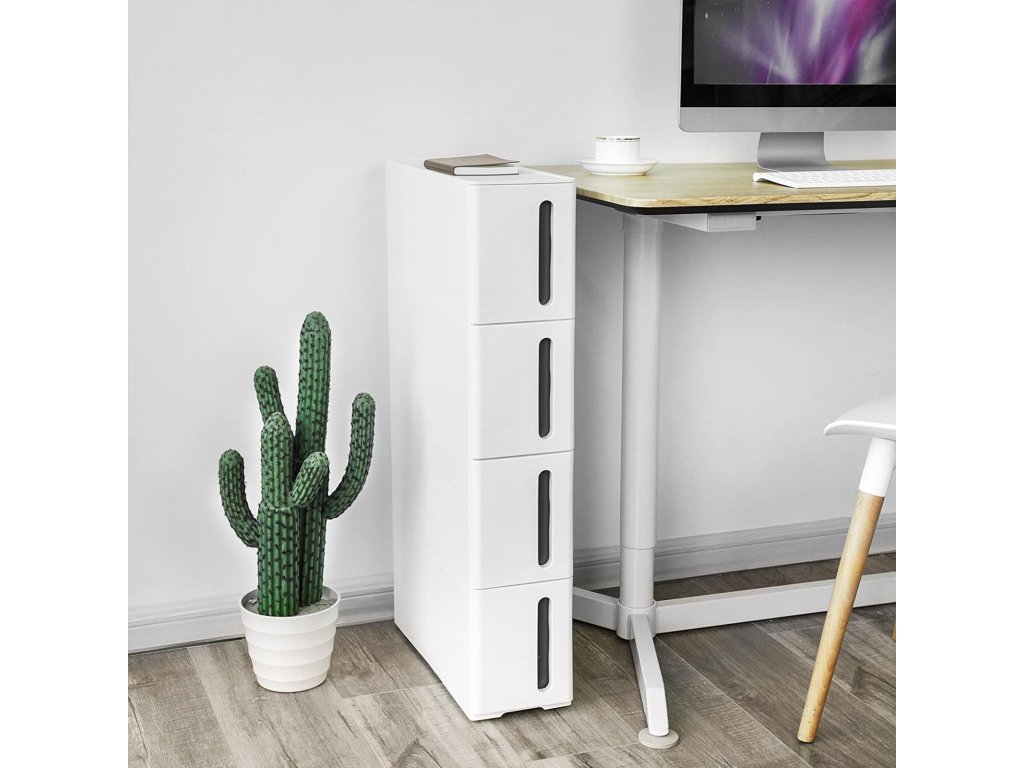 Ozka regalna omara na kolesih s 4 predali TROLLEY 17x84 cm, bela