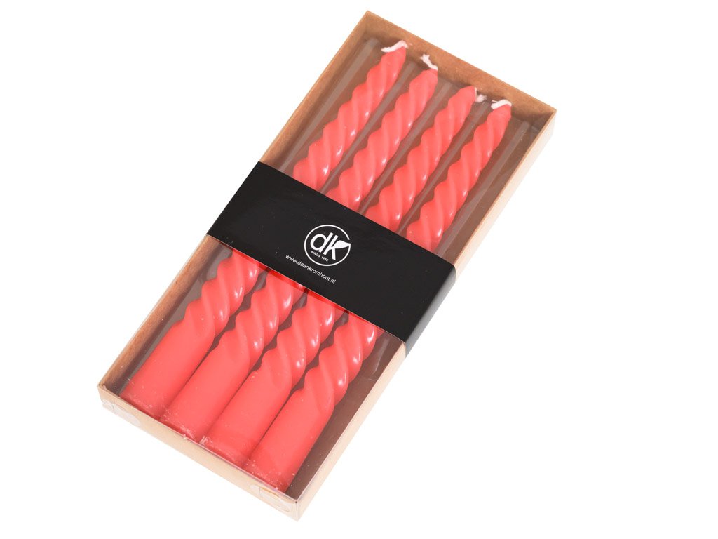 Komplet štirih rdečih namiznih sveč TWIST je odlična izbira za vsako svečano priložnost. Sveče imajo eleganten spiralni dizajn, ki bo vaši mizi dodal pridih razkošja. Primerne so ne le za posebne in romantične večerje, ampak tudi kot adventne sveče, ki bodo v vaš dom vnesle toplo in prijetno vzdušje.