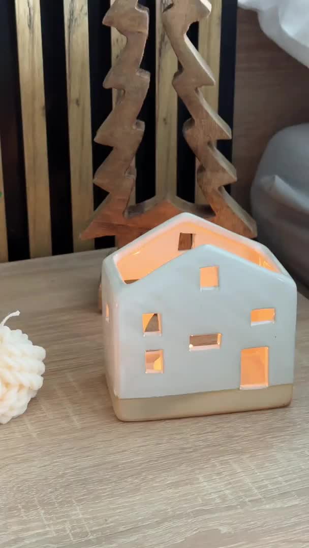 Keramični svečnik OPEN HOUSE 11 cm bel