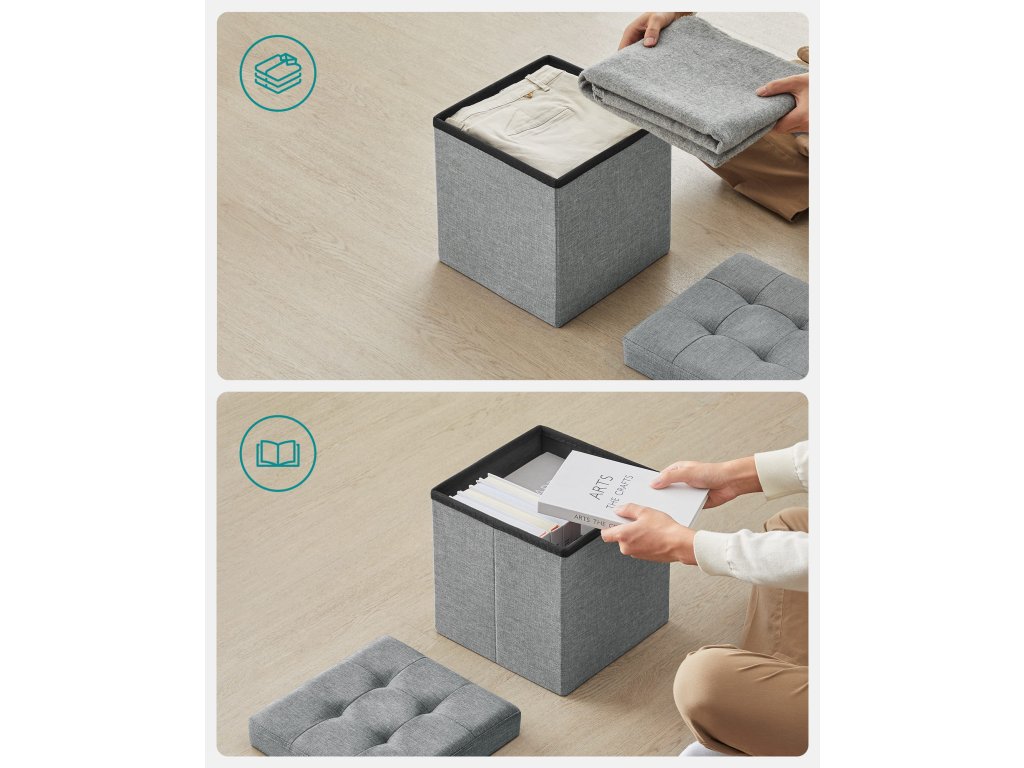 Tabure je več kot le mesto za sedenje. Zahvaljujoč svoji praktični zasnovi in shranjevalnemu prostoru postane nepogrešljiv pomočnik v vsakem domu. Shranite vanj odejo, revije ali morda otroške igrače – in jih imejte vedno pri roki. Eleganten dizajn z udobnim oblazinjenjem dodaja vašemu interierju šarm, ne glede na to, ali ga postavite v dnevno sobo, spalnico ali predsobo. Poleg tega se tabure enostavno sestavlja in prenaša, kar pomeni, da ga lahko uporabite točno tam, kjer ga trenutno potrebujete. S tem pametnim dodatkom pridobite stil in praktičnost v enem.