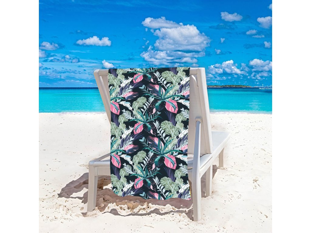Plažni set NIGHT BLOSSOM – brisača 100×180 cm in pončo 80×145 cm, črna