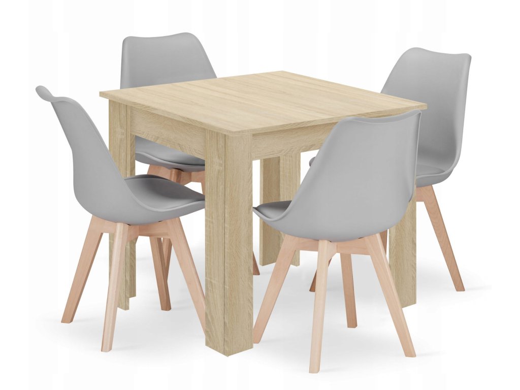 Jedilni komplet 1 + 4, miza MADO 80x80cm hrast sonoma + stol BALI MARK siva