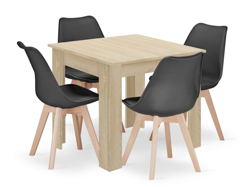 Jedilni set 1 + 4, miza MADO 80x80cm hrast sonoma + stoli BALI MARK črni