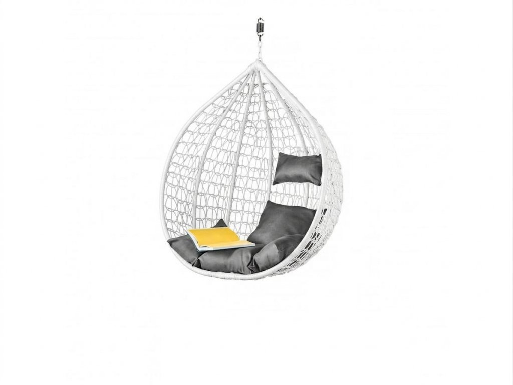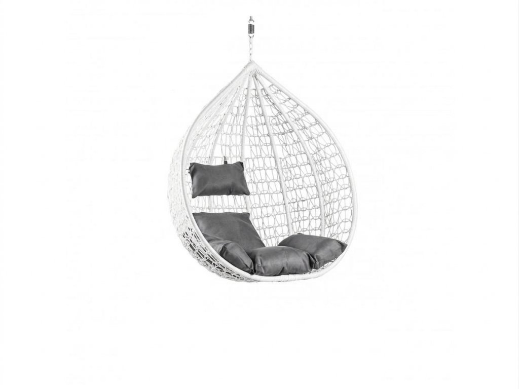 Beli viseči stol KOKON brez stojala, siva blazina