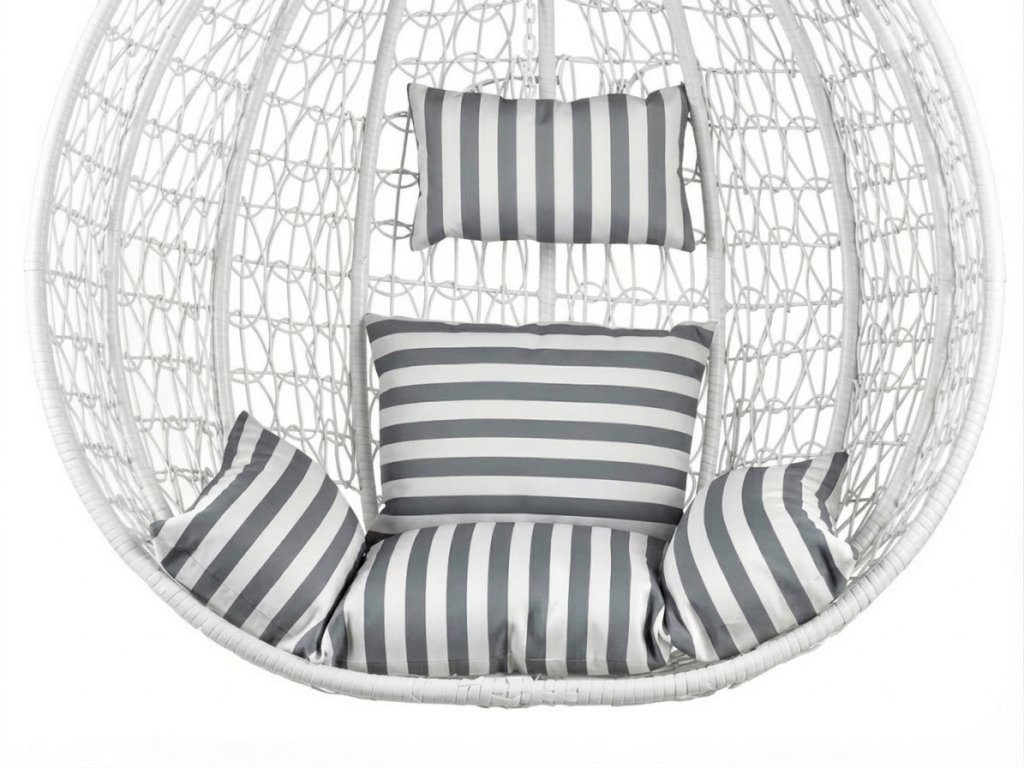 Beli viseči stol KOKON s stojalom, belo-siv vzglavnik