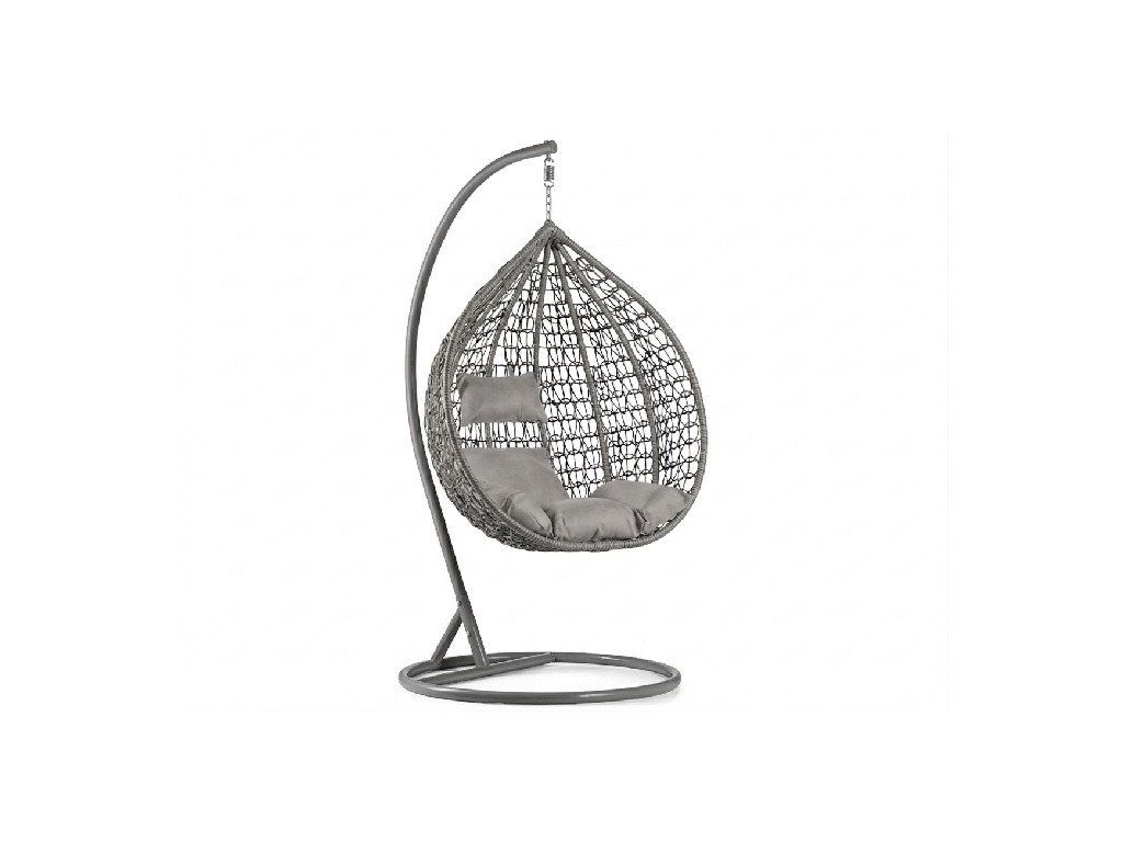 Šedé závěsné křeslo KOKON se stojanem, světlý polštář