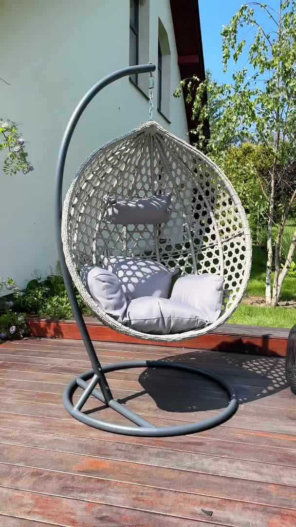 Odkrijte blagodejne učinke zibanja z našimi visečimi stoli, t.i. jajčki, ki bodo razvajali tudi vaše duševno zdravje. Zibanje sproža občutek ugodja, notranjega miru in učinkovito odstranjuje psihični stres. Kakovostno obdelani gugalni stoli iz umetnega ratana so visoko odporni na neugodne vremenske razmere in domače živali. Umetni ratan je na prvi pogled skorajda nerazločljiv od naravnega. Naši viseči stoli so odlični tako za vrt kot za notranje prostore. Uživajte v prostem času na teh stolih v skandinavskem slogu, ki sodijo med najbolj priljubljene kose modernega pohištva. Privoščite si luksuzno sprostitev in vnesite v svoj dom in vrt elemente miru in elegance.