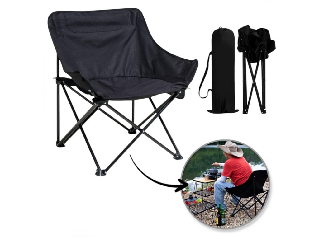 Zložljiv kamp stol TRAIL, črn