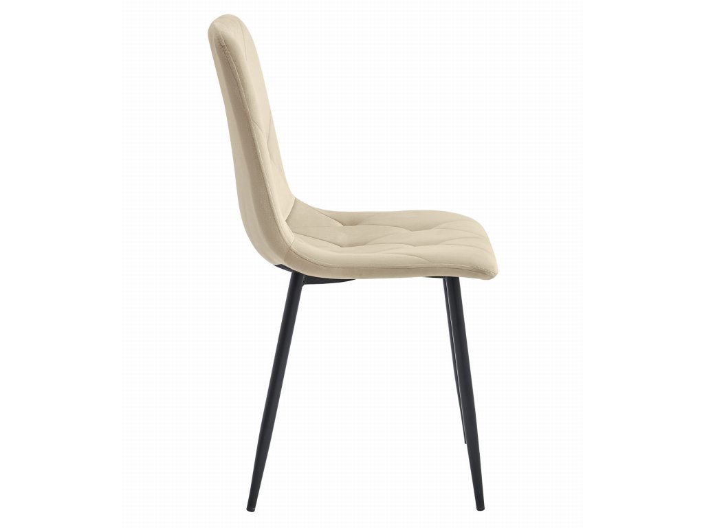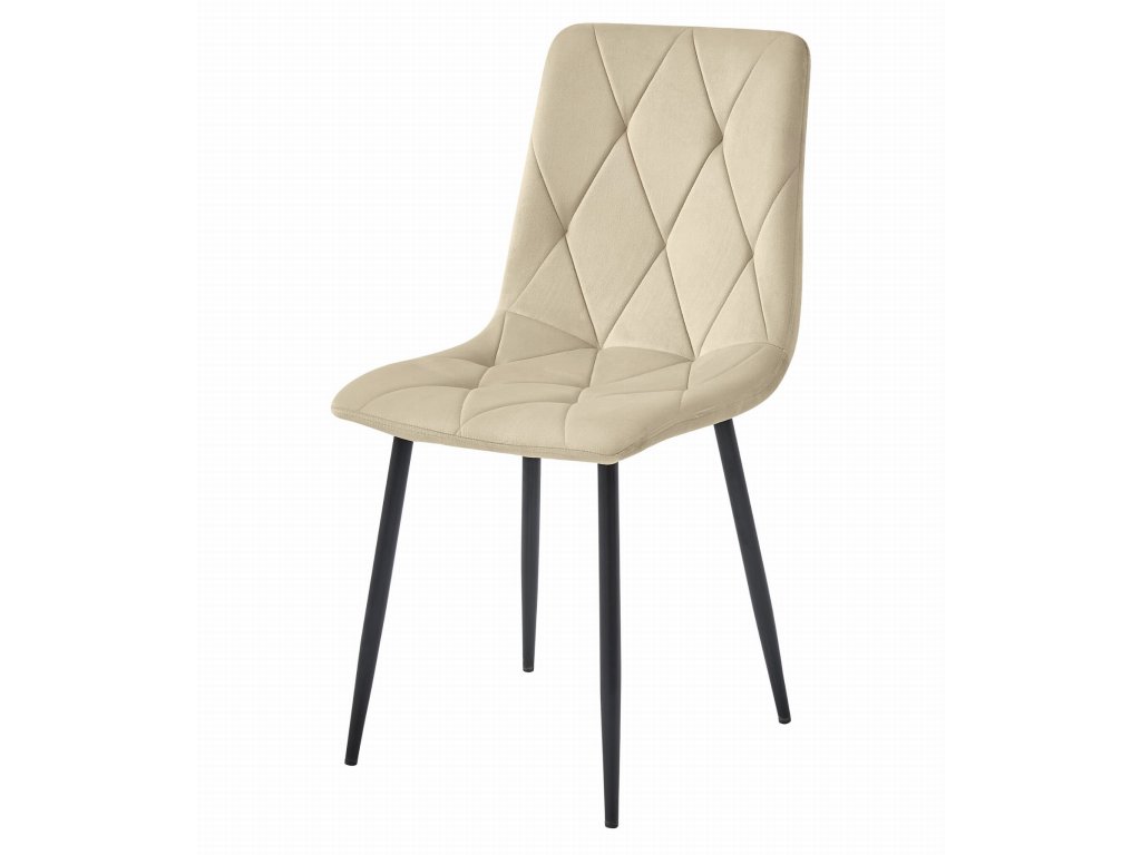 Svetlo bež žametni jedilni stol LIBRA s črnimi nogami