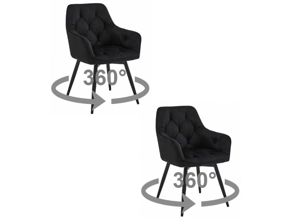 Vrtljivi jedilni stol JORK360 VELVET, črn