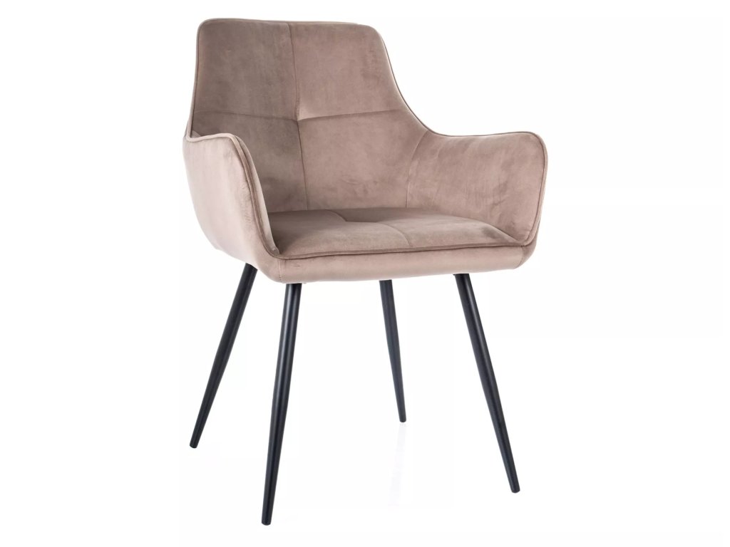 Žametni jedilni stol s črnimi nogami GRAPE bež