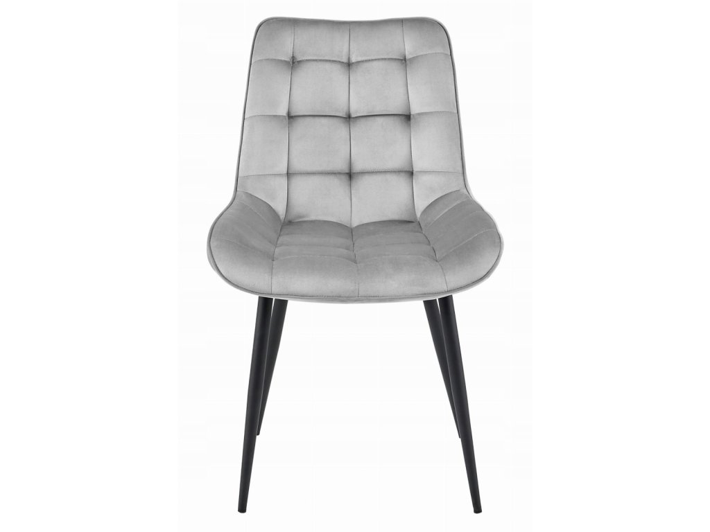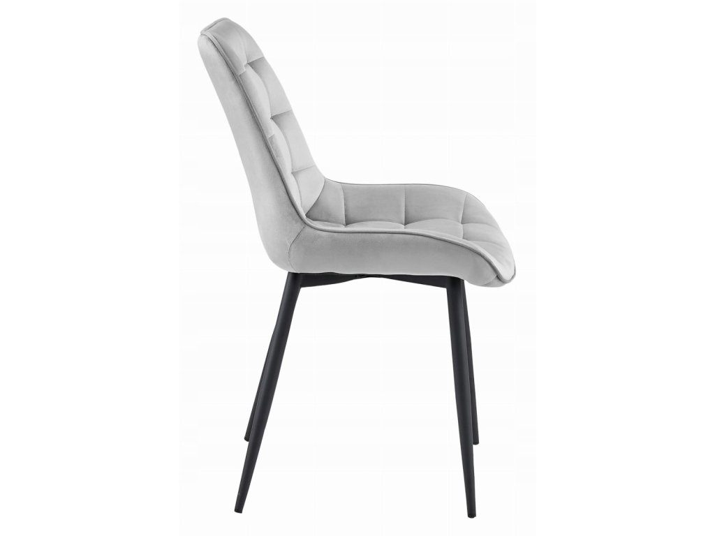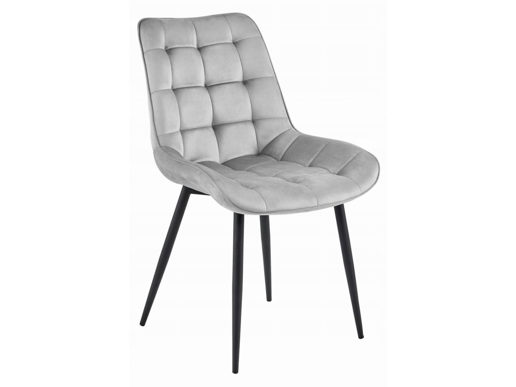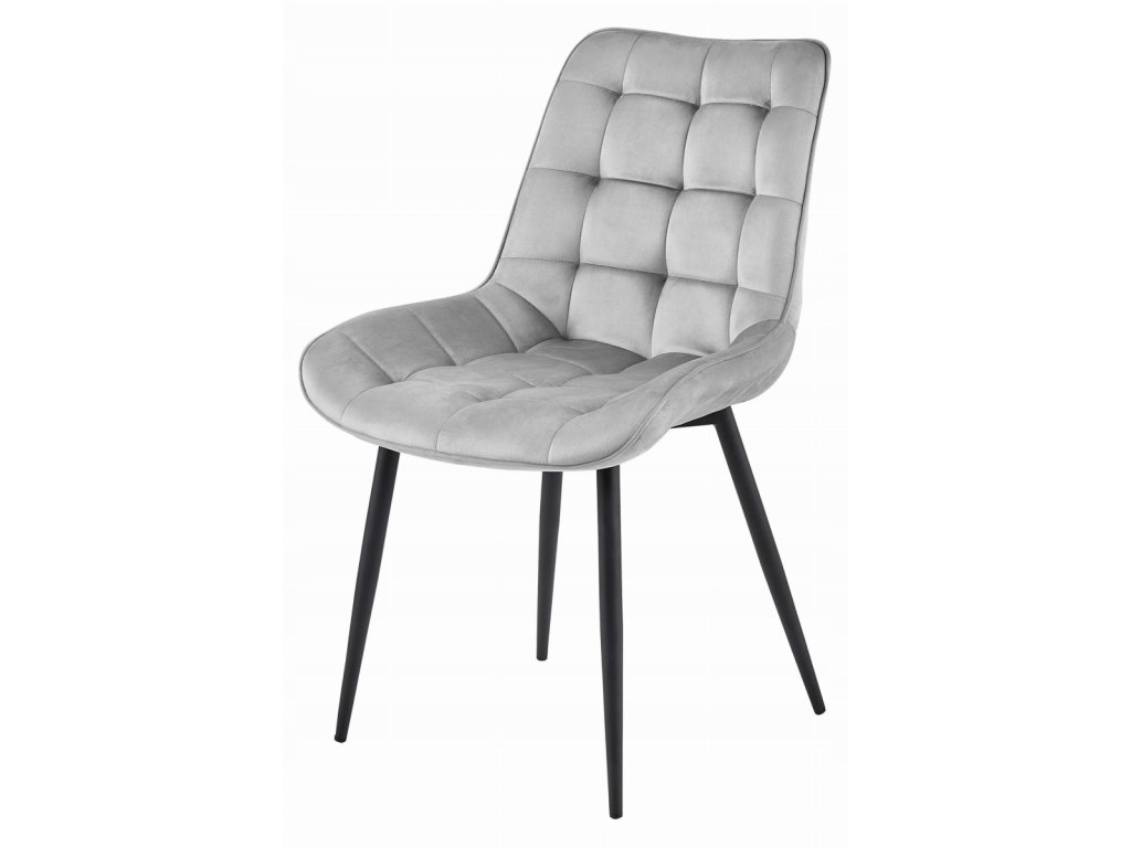 Žametni stol BERA s črnimi nogami, svetlo siv