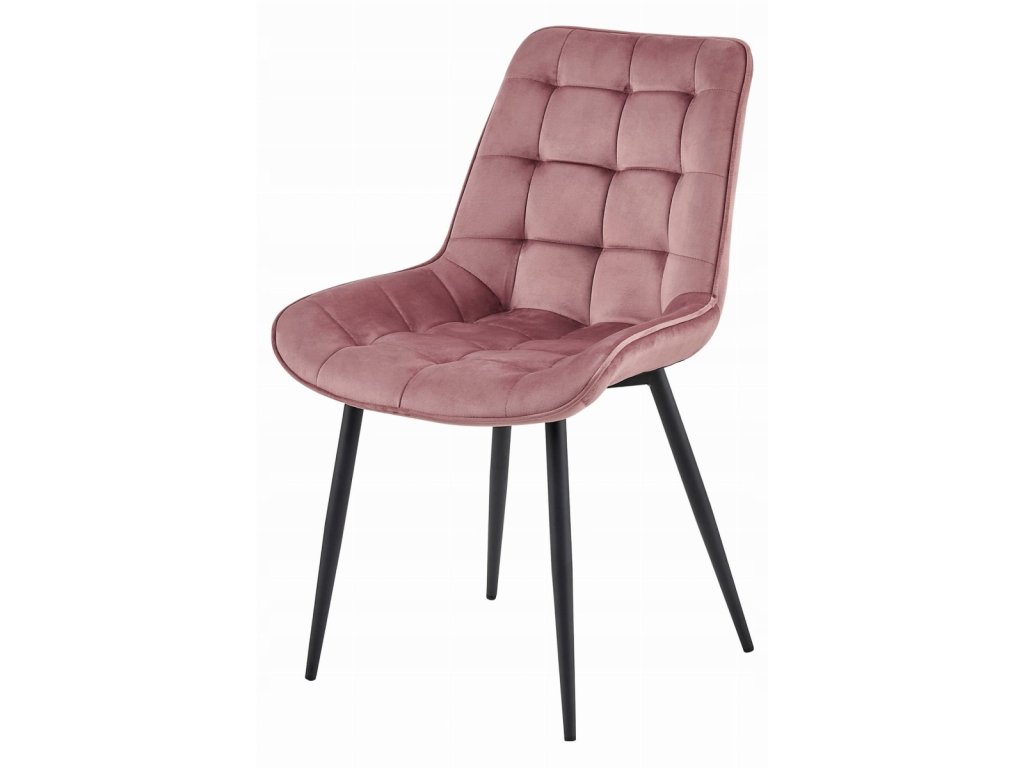 Žametni stol BERA s črnimi nogami, temno roza